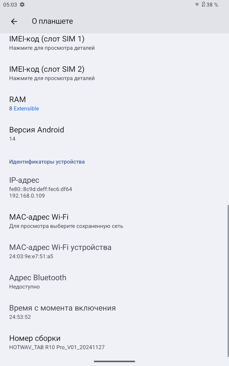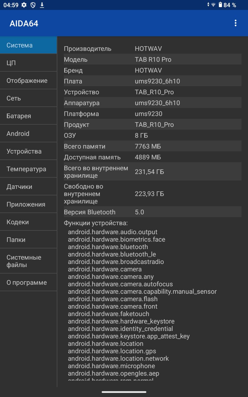 The display installed in the HOTWAV R10 Pro is not bad for the price category, but it is definitely not ideal. The panel made using IPS technology is still more suitable for working indoors than in direct sunlight. The picture noticeably fades, setting the maximum brightness helps only partially. The resolution of 1280x800 pixels on paper may not seem quite sufficient for a 10.1-inch diagonal, but in real life the image clarity is sufficient. Only the smallest fonts and icons seem slightly blurry, but this impression rarely occurs. The color rendition is correct, without a strong shift to yellow or other shades. The image refresh rate is standard, but opponents with similar price lists are not ready to boast of anything other than 60 Hz. Of course, there is no oleophobic coating, but many tablets with much more impressive price tags also lack it. The touch panel is not the most responsive, demanding gamers or users who have more expensive Android devices in use will quickly feel the differences. The IPS display sometimes does not recognize light finger touches. There is no auto-brightness and, as a result, no proximity sensor. But auto-rotation works correctly. Thus, the screen deserves a rating of 4 with a small, barely noticeable minus.