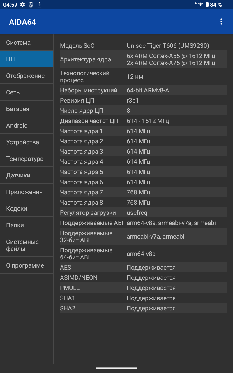 - processor: UNISOC Tiger T606, video chip: Mali-G57 MC1;