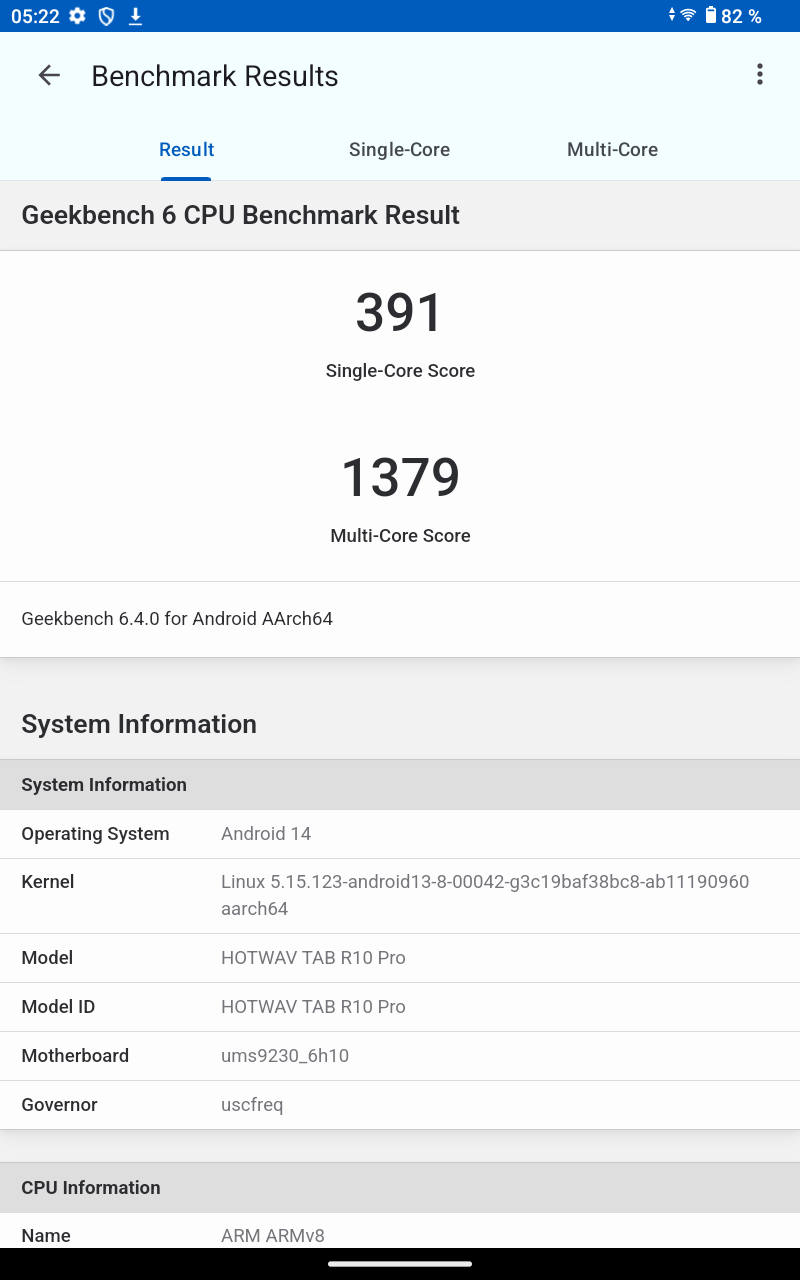 In the Geekbench 6 benchmark, the gadget received 391 points in single-core mode and 1379 points in multi-core testing mode.