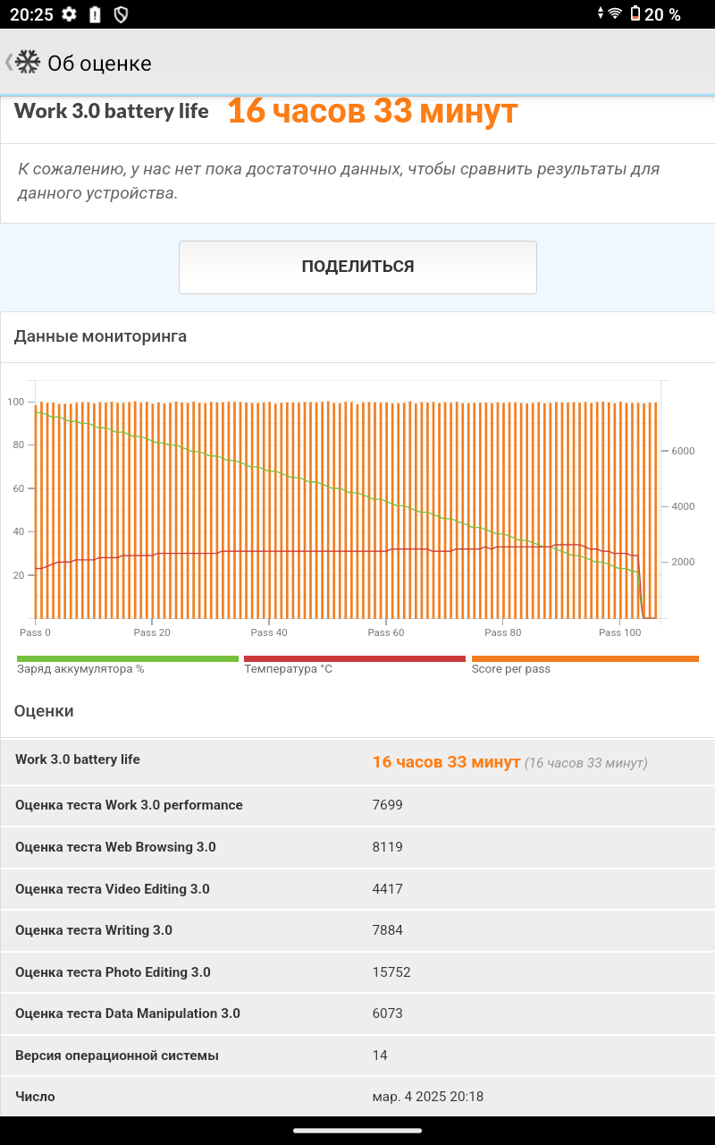 As a result, the performance of the tablet in games and applications within the price segment deserves a rating of 5 with a minus.