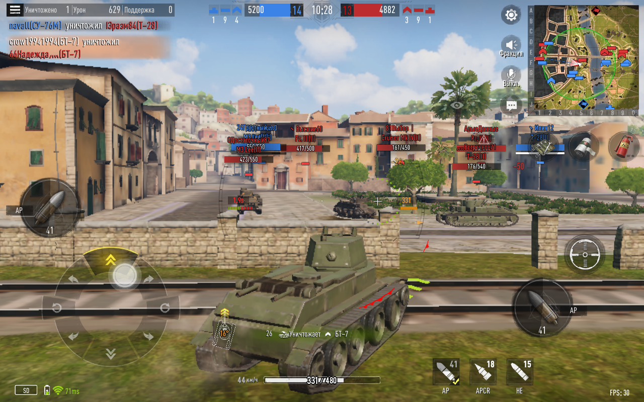 But the slightly less demanding Tank Company is already quite playable at low graphics settings. And this is despite large-scale battles of 15 vs. 15 tanks on fairly well-developed locations, often in places copying those in the full-fledged World Of Tanks for personal computers. 99% of the time, the user will see 30 frames per second, in intense battle scenes there are drops to 20-25. Not critical for the average gamer.