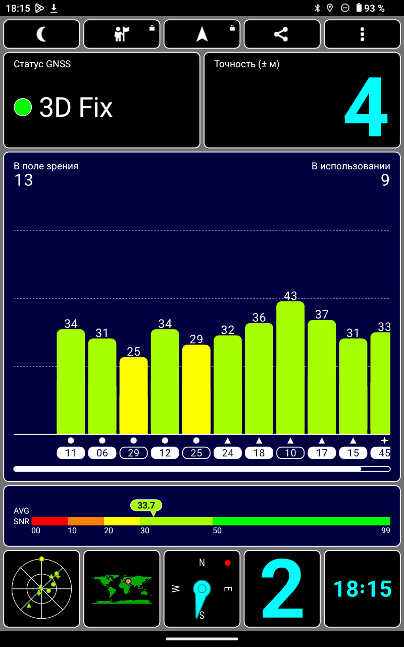 - navigation: GPS / GLONASS / Beidou / Galileo;