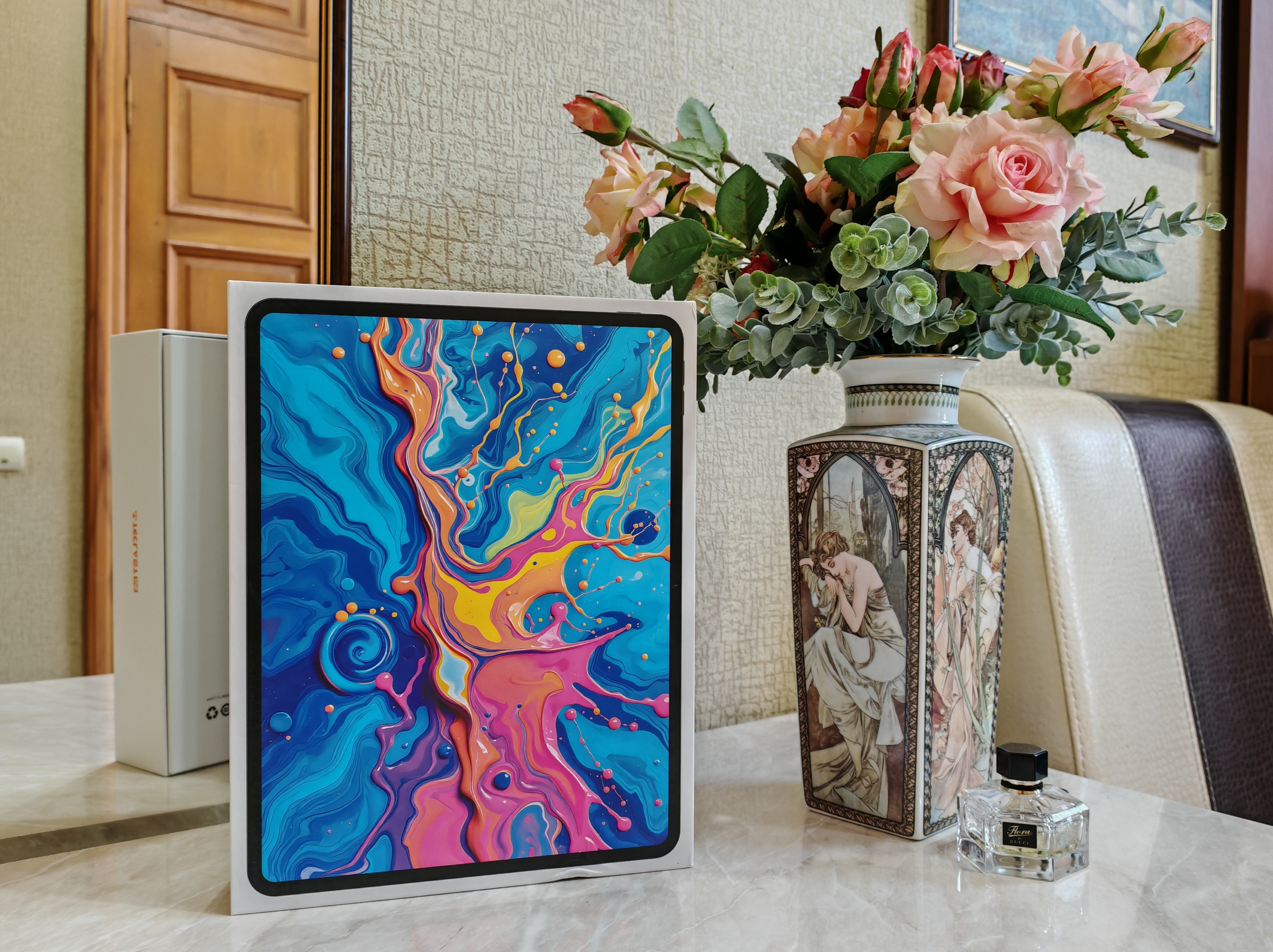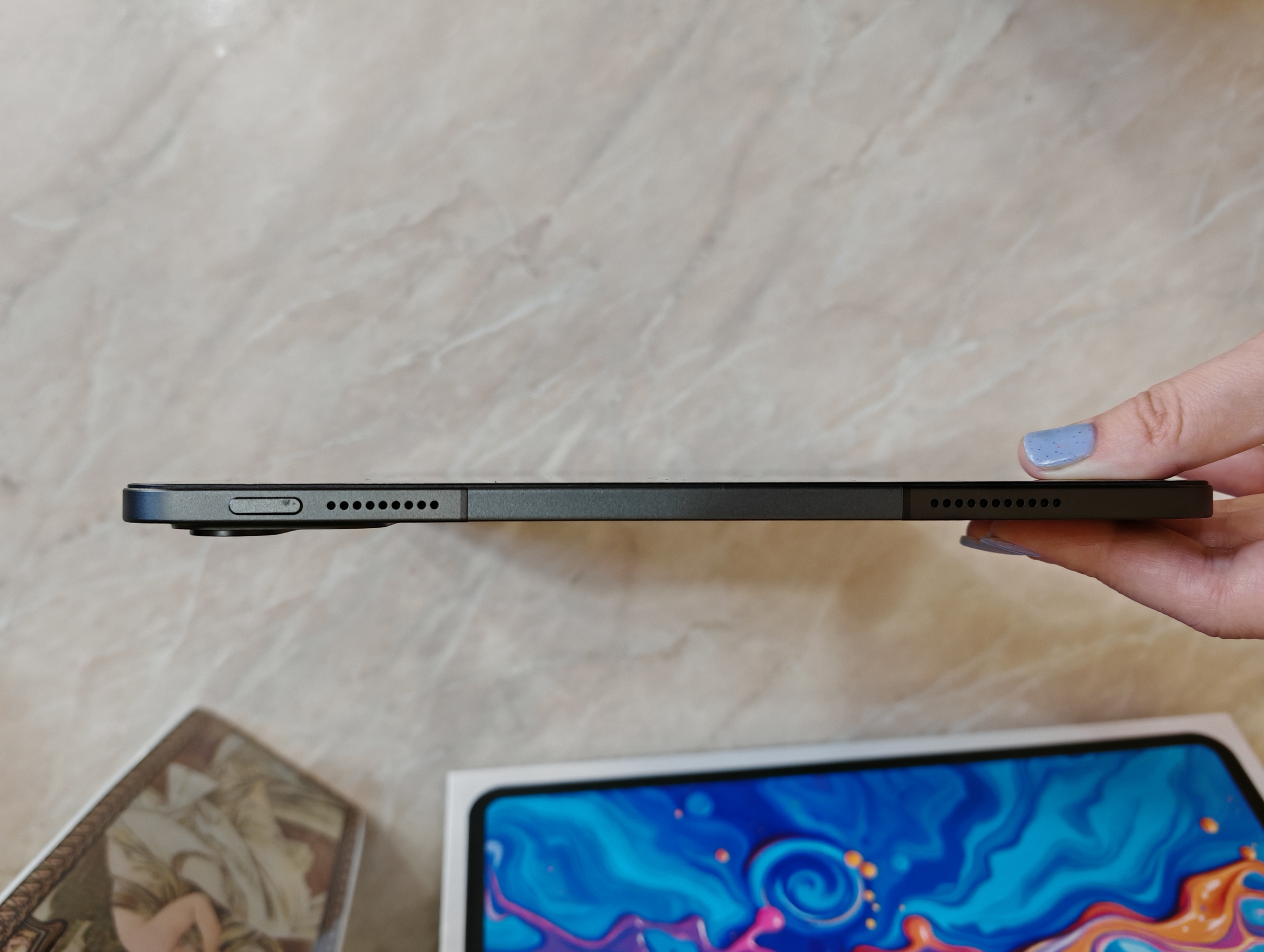 The 12.7-inch IPS display is definitely one of the main competitive advantages of the TECLAST ArtPad Pro. The resolution of 2176x1600 pixels “on paper” does not seem outstanding, but at the same time small fonts and icons do not look blurry or loose. The only thing you can find fault with is the standard refresh rate of 60 Hz. But in other respects, the screen is extremely pleasing. Firstly, the touch panel used is responsive and accurate, clearly better than that of many inexpensive tablets. Secondly, the brightness reserve is quite good for an IPS panel, even in direct summer sunlight the picture remains partially visible. Thirdly, the proximity and light sensors work correctly, the auto brightness does not raise any questions. Fourthly, the color rendition is rich, natural, the image does not lose at tilt angles. Rather for show, there is a separate Art Space key on one of the edges of the device, which allows you to select one of three color rendition presets.