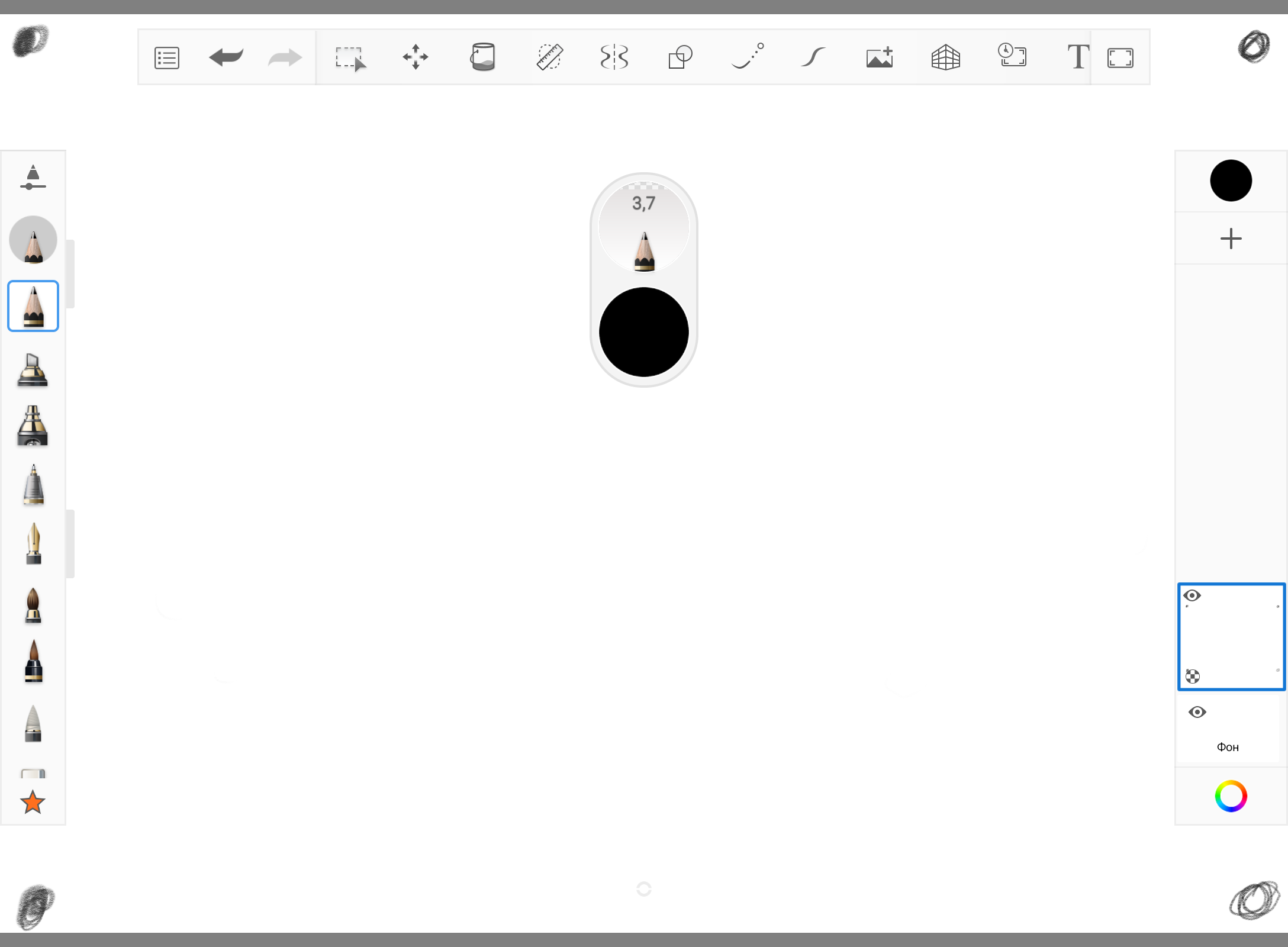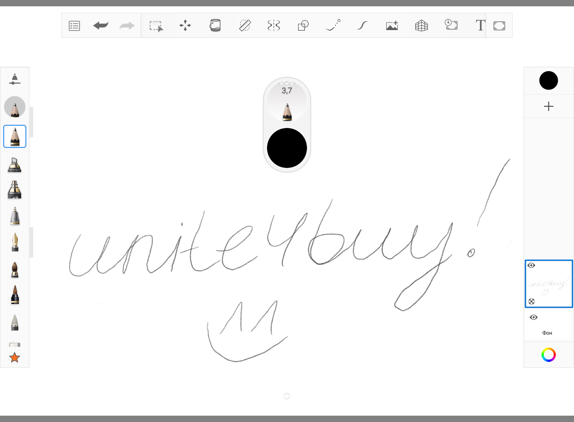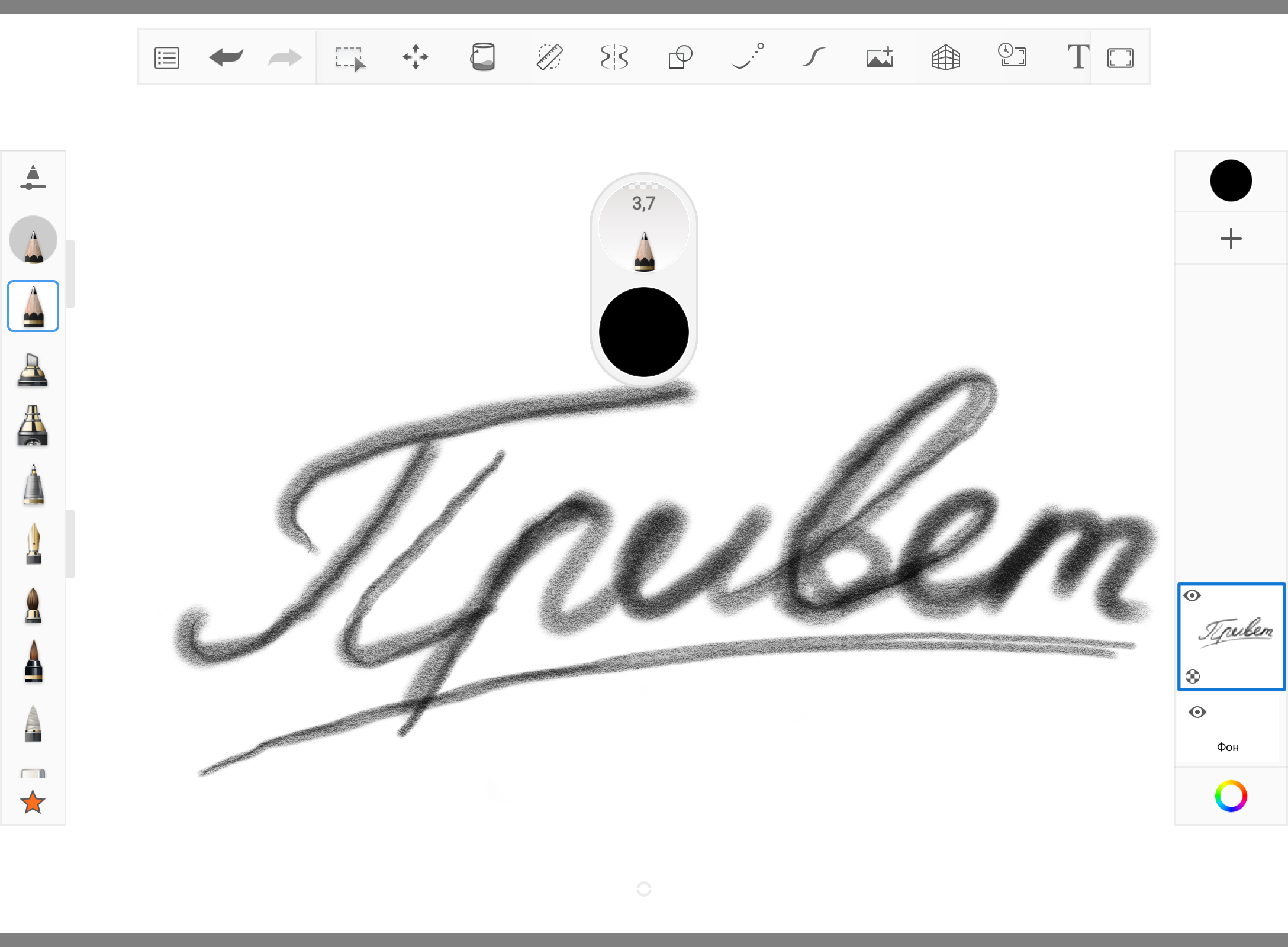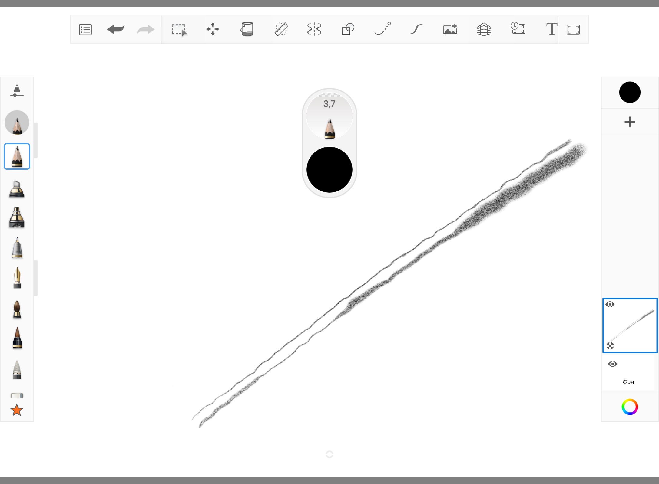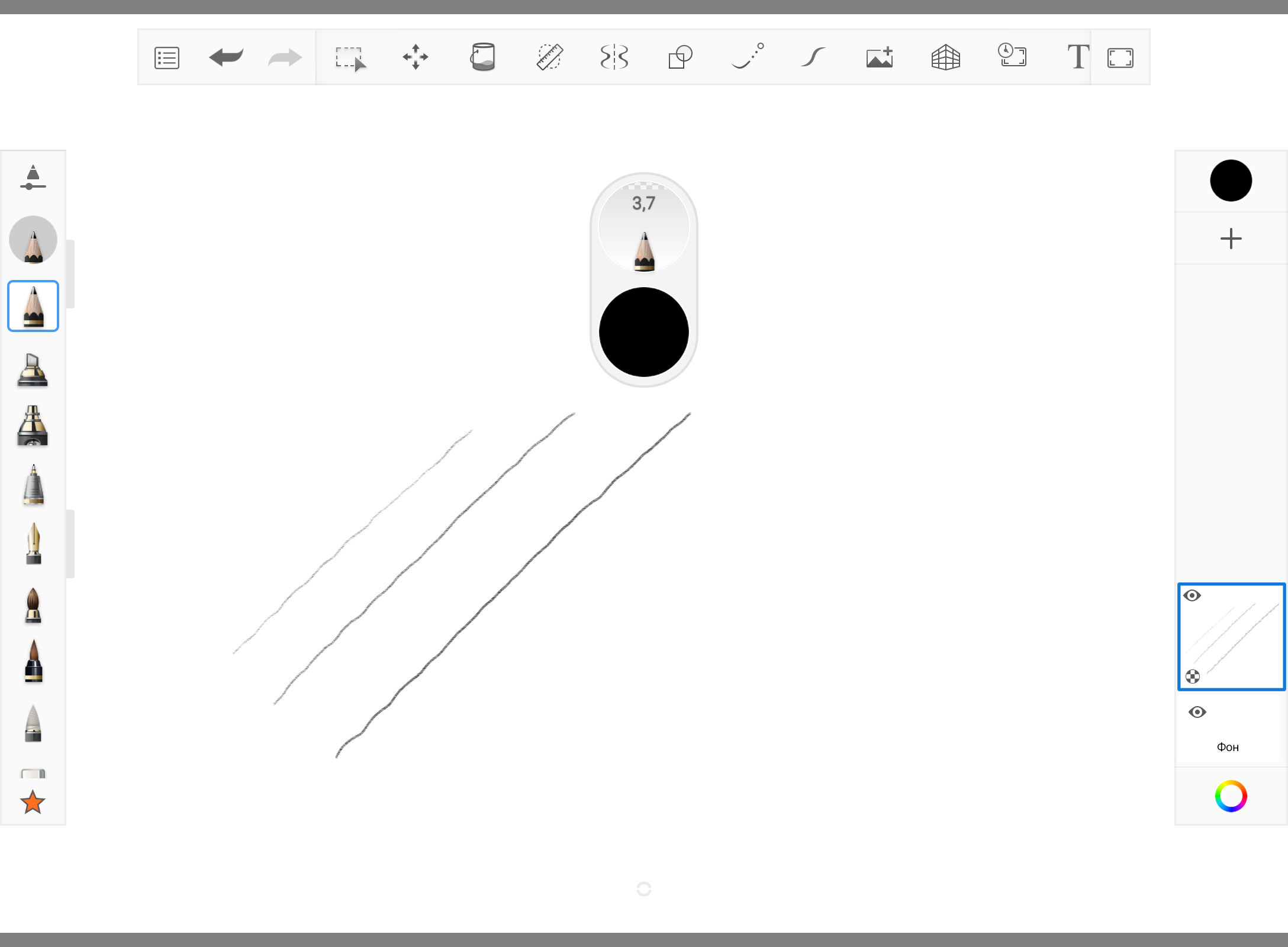 Let's check the sensitivity of the stylus. Depending on the pressure applied, the thickness and saturation of the line drawn changes significantly, everything works more than correctly.