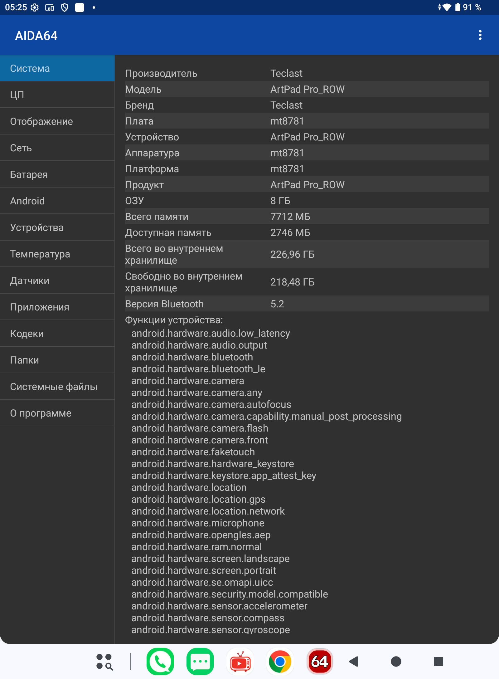 Finally, there are the telephone functions of TECLAST ArtPad Pro. They are provided with support for two SIM cards. For calls, there is only speakerphone, even when the volume is set to minimum, people around you will hear all the details of the conversation, you need to understand this fact. There are no complaints about the connection, the reception is at the level of an average inexpensive phone. The interlocutor did not complain about the quality of the reception. With WiFi, the gadget is also normal, through 2 walls and about 7-8 meters from the router, the Internet connection functioned without noticeable problems.