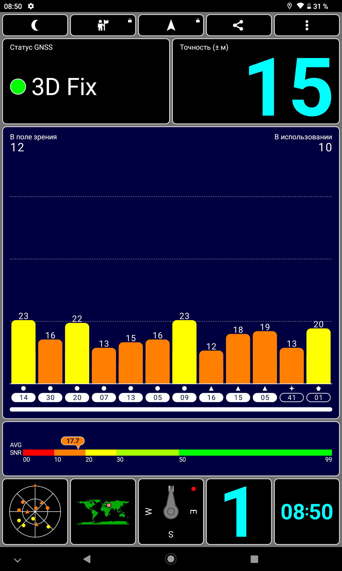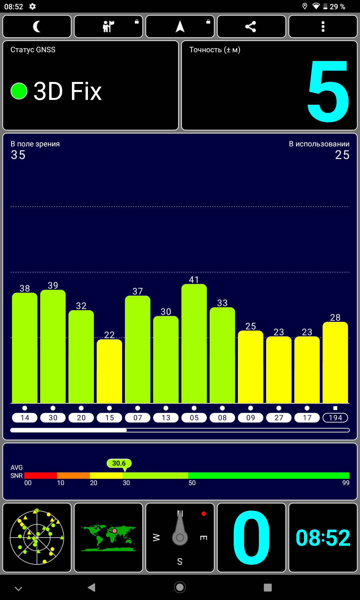 The GPS test showed decent results. Firstly, the search for satellites even indoors took about 15-20 seconds. Secondly, the accuracy indicators both indoors and outdoors turned out to be excellent, the tablet can be used as a navigator.